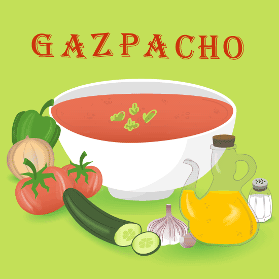 Gazpachos, dieta mediterranea, comida y bebidas.